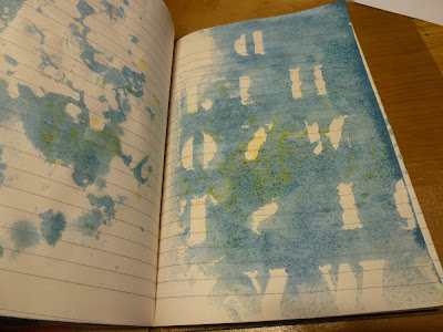 Jag har använt mig av beige spillbitar som jag först blött ned på båda sidorna och sedan skrynklat ihop innan jag började torka det med embossingfönen... Jag tyckte att de passade så bra tillsammans, text-, prick, och notpapperet :-). Jag passade också på att sno till mig biljettremsan för att binda ihop det hela ännu bättre :-).